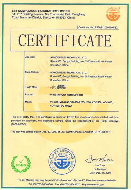 Estándar:RoHS Certification |