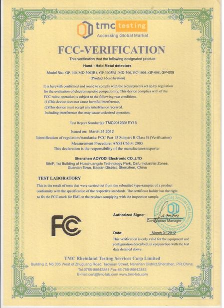 Estándar:FCC Certification |